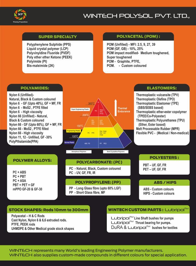 Whole range of Engineering polymers, Specialty & Super Specialty Polymers from World’s leading Manufacturers and compounders.