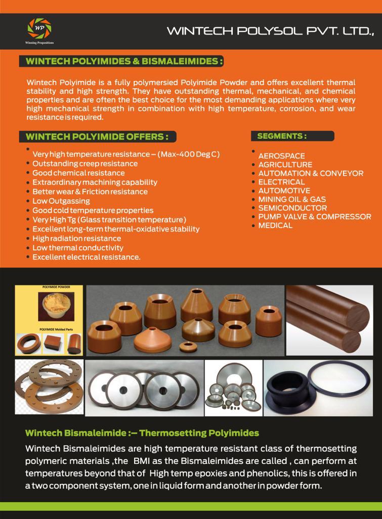 Wintech Super Specialty Wintimides are parts, blanks made out of POLYIMIDE material which has very high temperature resistance upto 350Deg C