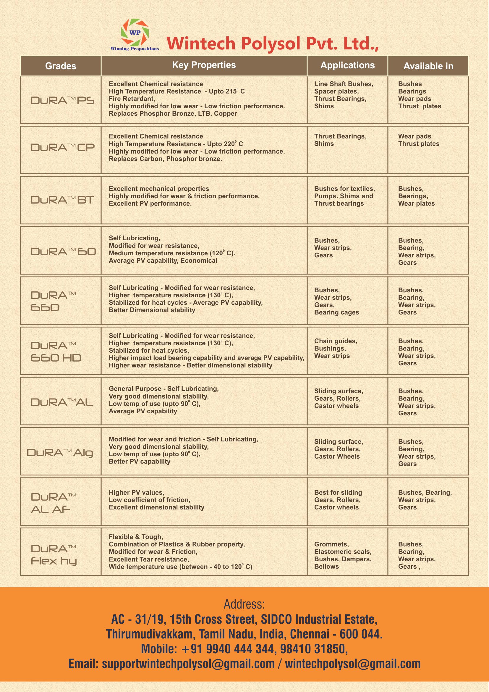 We are a team of high profile polymer Engineers,Technocrats & Specialists with an average domain experience of over 25 years. Wintech Polysol Pvt. Ltd., started on May 3rd,2017.
